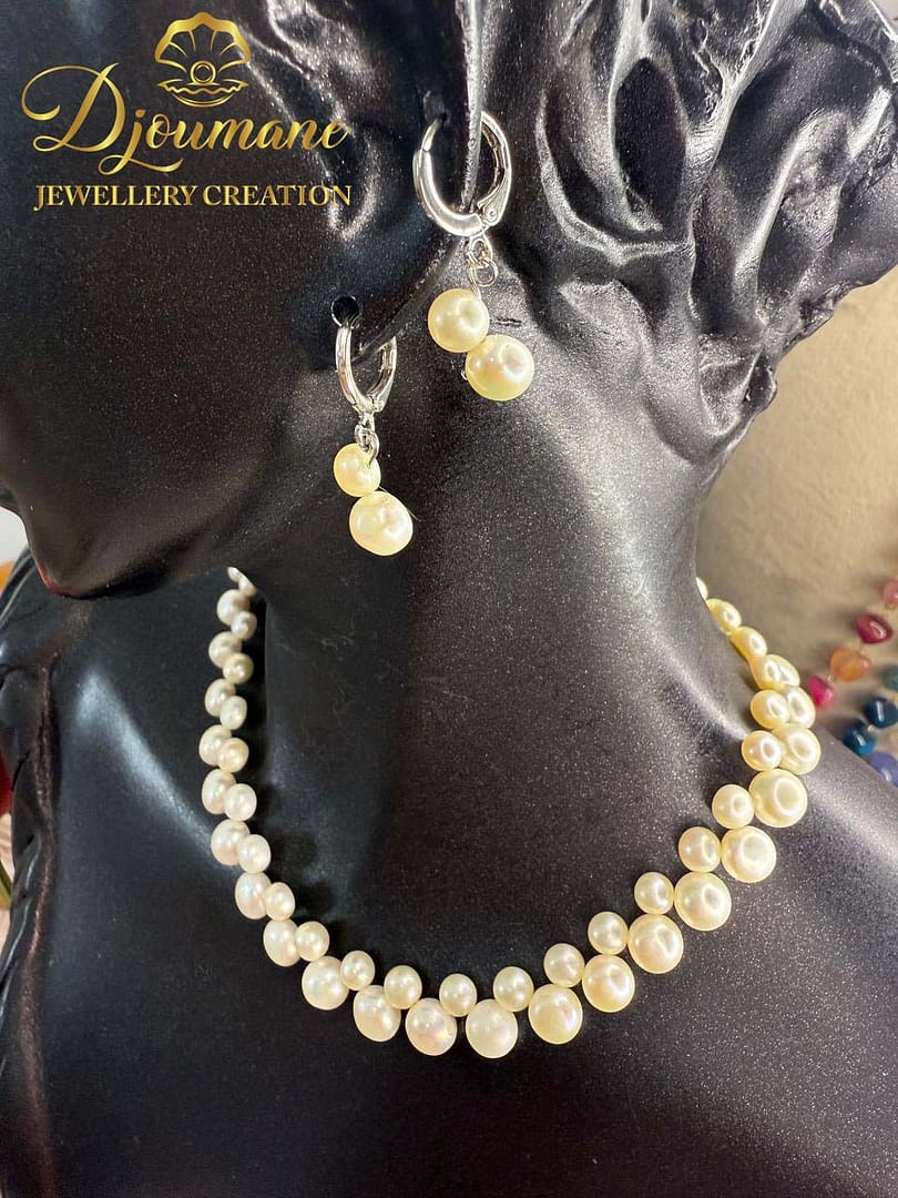 Parure fine en pierres d’eau douce (جوهر حر) 4 mm, motifs en argent 925.